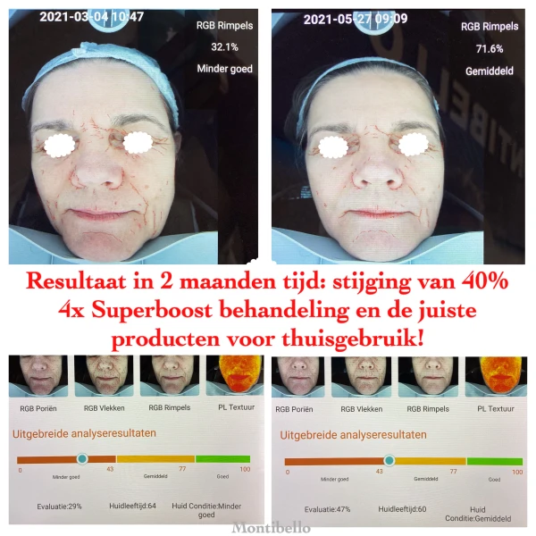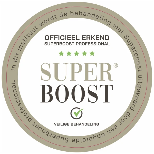 SUPER trots zijn wij dat we een exclusieve huidverjongingsbehandeling kunnen aanbieden die 100% natuurlijke huidverjonging geeft met de impact van een medische behandeling...de SUPERBOOST 2.0 !! Een behandeling met apparatuur en samengestelde cocktails die de huid er jonger uit laten zien zonder spierontspanners, fillers of lasers. Deze nieuwste technologie is gebaseerd op een door artsen ontwikkelde methode en wordt enkel aangeboden in de daarvoor beperkt geselecteerde instituten en biedt meerdere oplossingen voor gezicht, hals en decolleté.